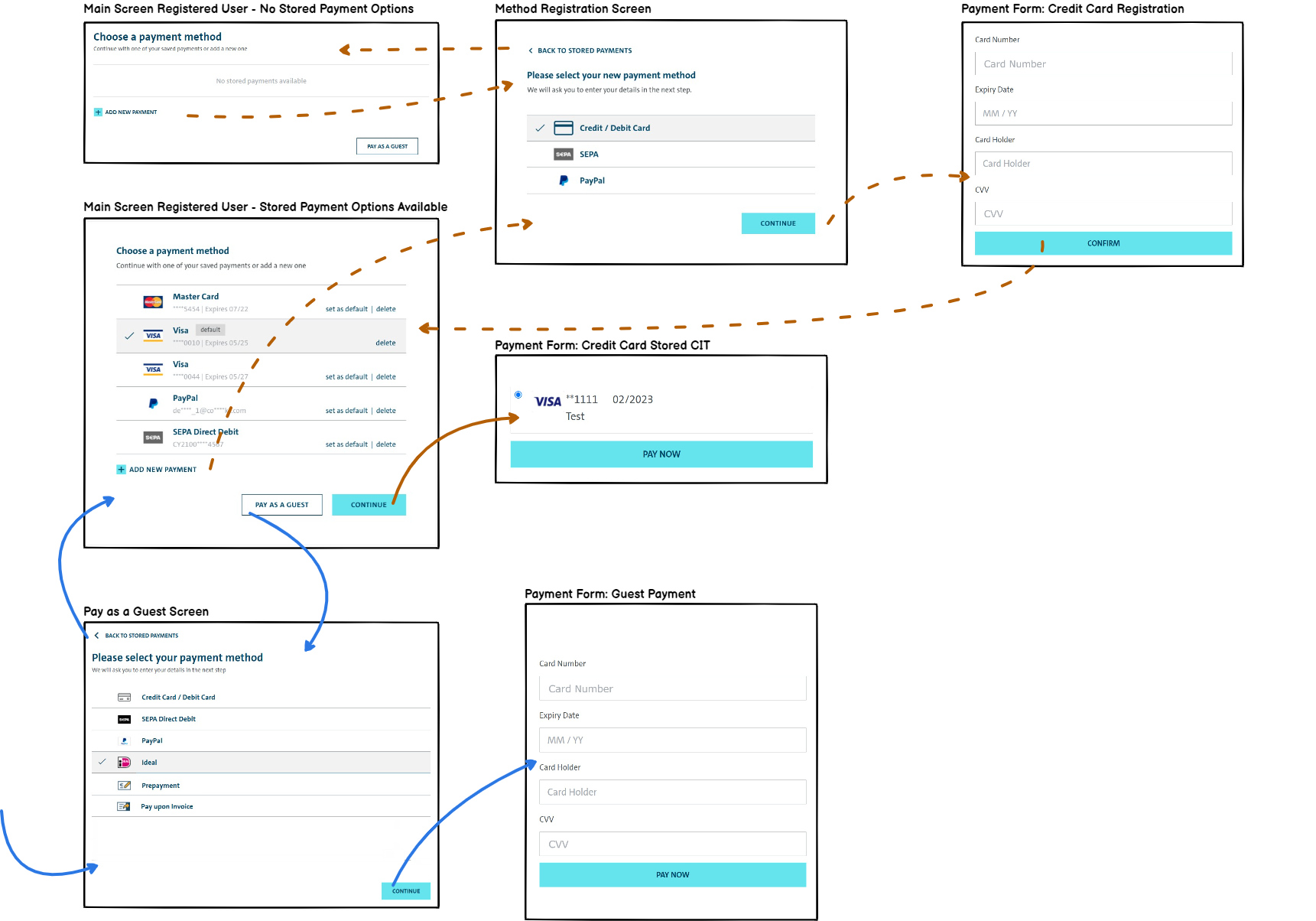 All SmartPay journeys are built modularly to represent registered user and guest user journeys as well as special flows like subscription or MIT journeys.