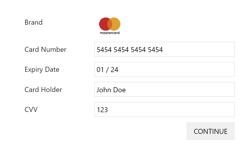 Sample below shows Token Creation request for the following credit card collection and provisioning.